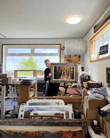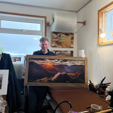 Although our canvases can stand alone as finished pieces for your wall we also add various styles of frame to increase their impact. We like to use local materials with an interesting story and a strong link to the landscape.