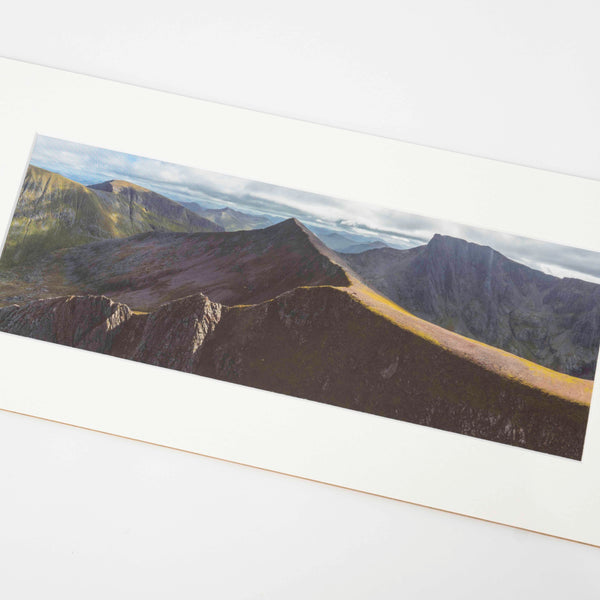 Jack captured this unique view of Ben Nevis from Carn Mor Dearg, showcasing the mountain's impressive north face. The afternoon light highlights the steep ridges, revealing the true scale of Ben Nevis. Perfect for adding a sense of adventure and natural beauty to living rooms, offices, or entryways.