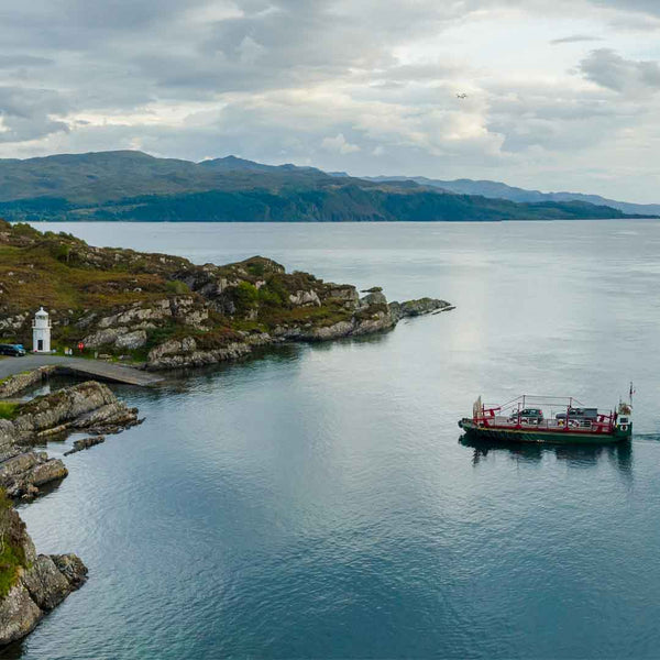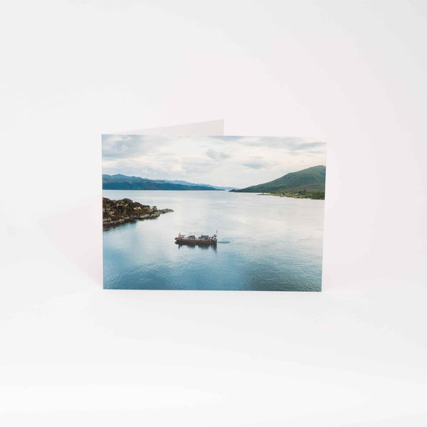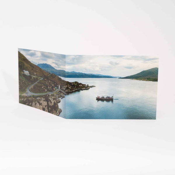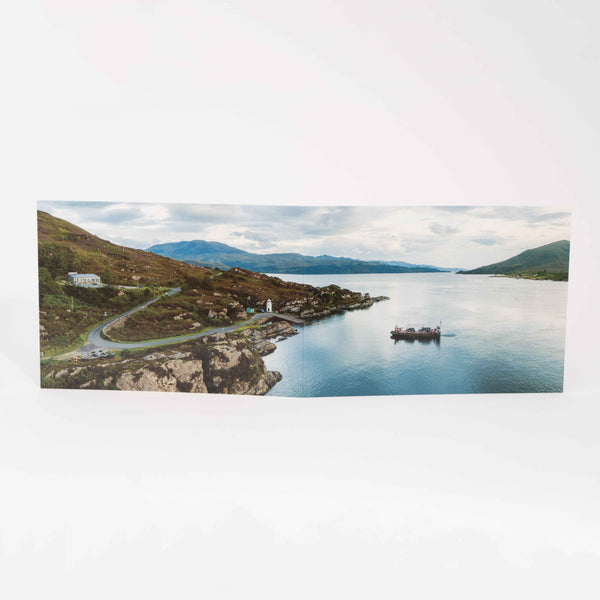 The world's last turntable ferry on route from Glenelg to the Isle of Skye, captured in panoramic form with vibrant colours and incredible detail. An ideal piece for any space that celebrates adventure and the beauty of the Scottish Highlands.